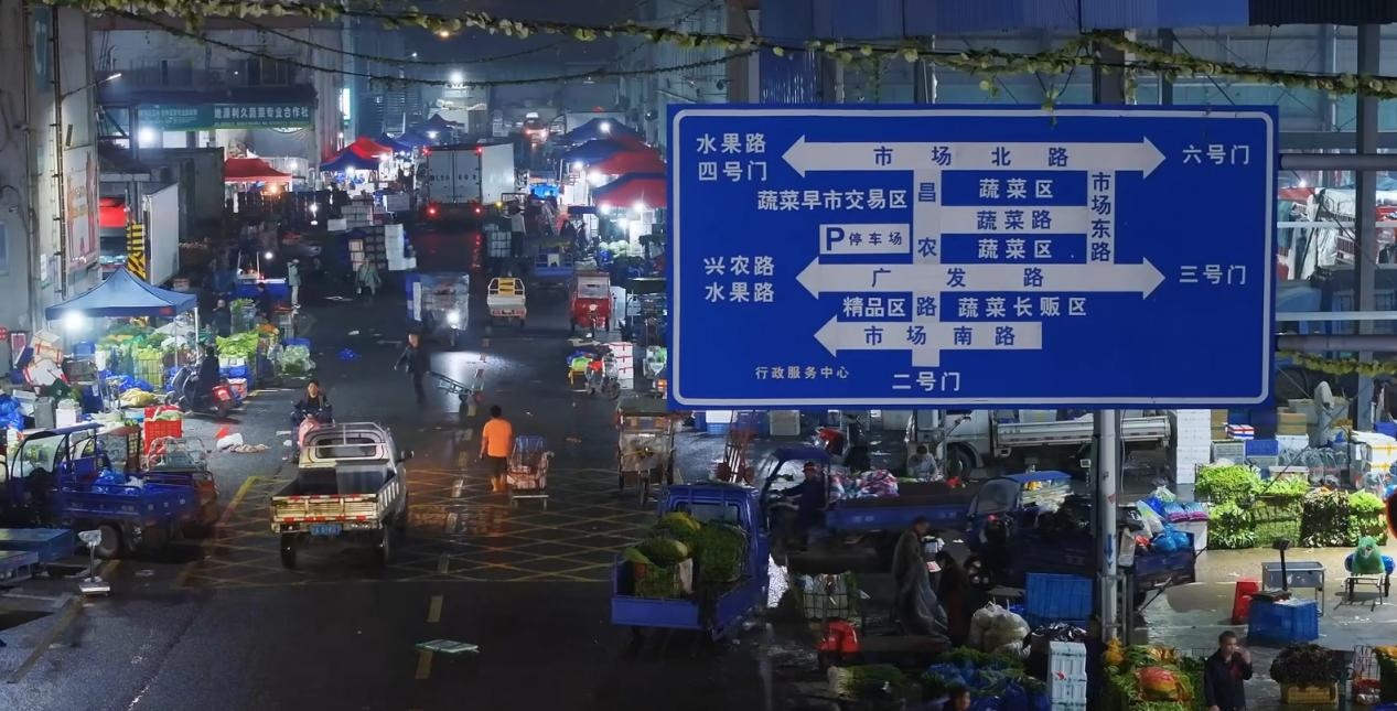 拂晓时分,当大多数人还在梦乡时,这里已然“苏醒”。一盏盏明亮的霓虹灯下,人影、车流来去匆匆,来自世界各地的果蔬不断汇聚于此,关乎着千万市民餐桌补给、市场平稳的源头就此展开。