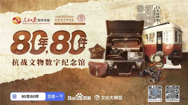 9月30日,由人民日报数字传达与我国国家博物馆、我国人民大学、百度文心大模型、联合出品的《80年,80件》智能体和3D文物词条正式上线。项目依托百度文心大模型技能,联动,经过“文心智能体+3D文物词条”方式,整合威望抗战文物材料,完成文物数字化、故事化出现,让80件抗战文物“活起来”。
